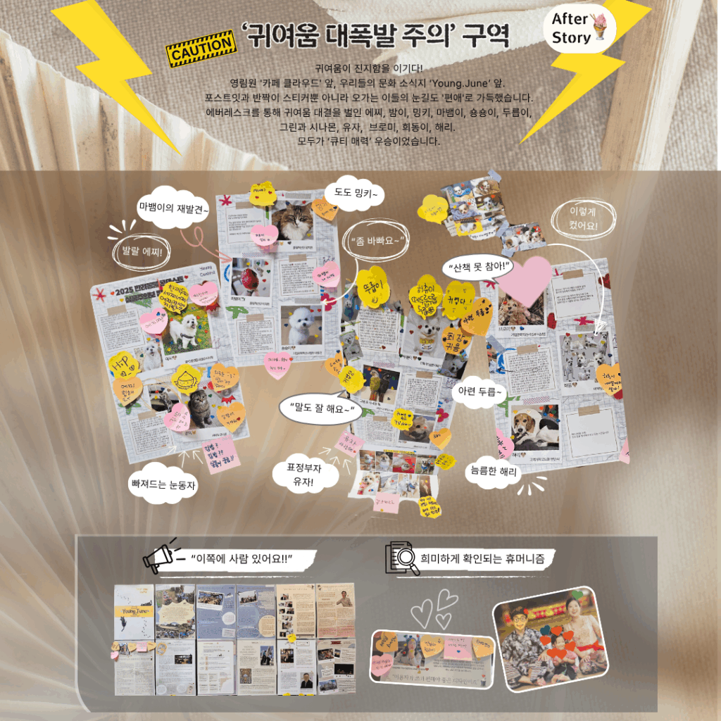 ‘증미역 이야기 맛집’이 네번째 이야기를 가져왔습니다. 영림원소프트랩의 문화 소식지 4호인 2025년 7월 ‘Young.July’ 에 담긴 [After Story] 코너입니다. CAUTION!! ‘귀여움 대폭발 주의’ 구역 귀여움이 진지함을 이기다! 영림원 ‘카페 클라우드’ 앞,…