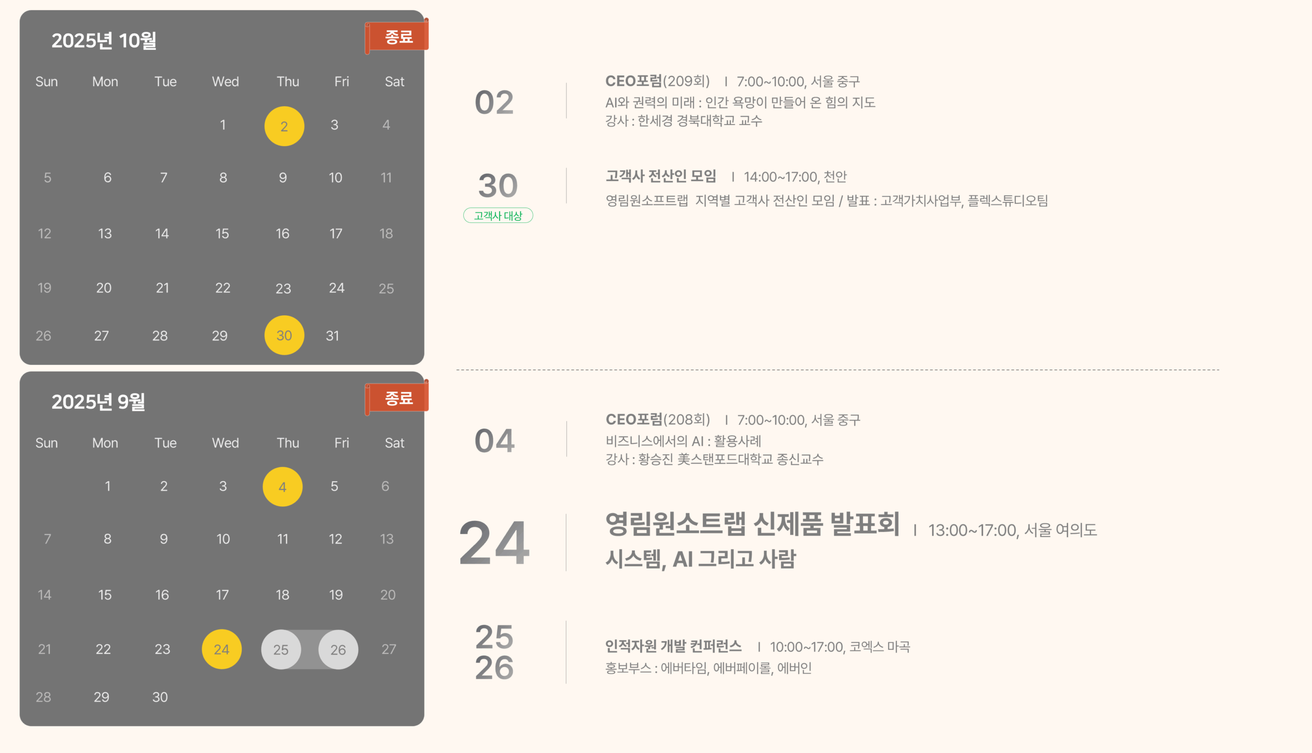 준비 중인 주요 행사 일정을 공유합니다 🙂