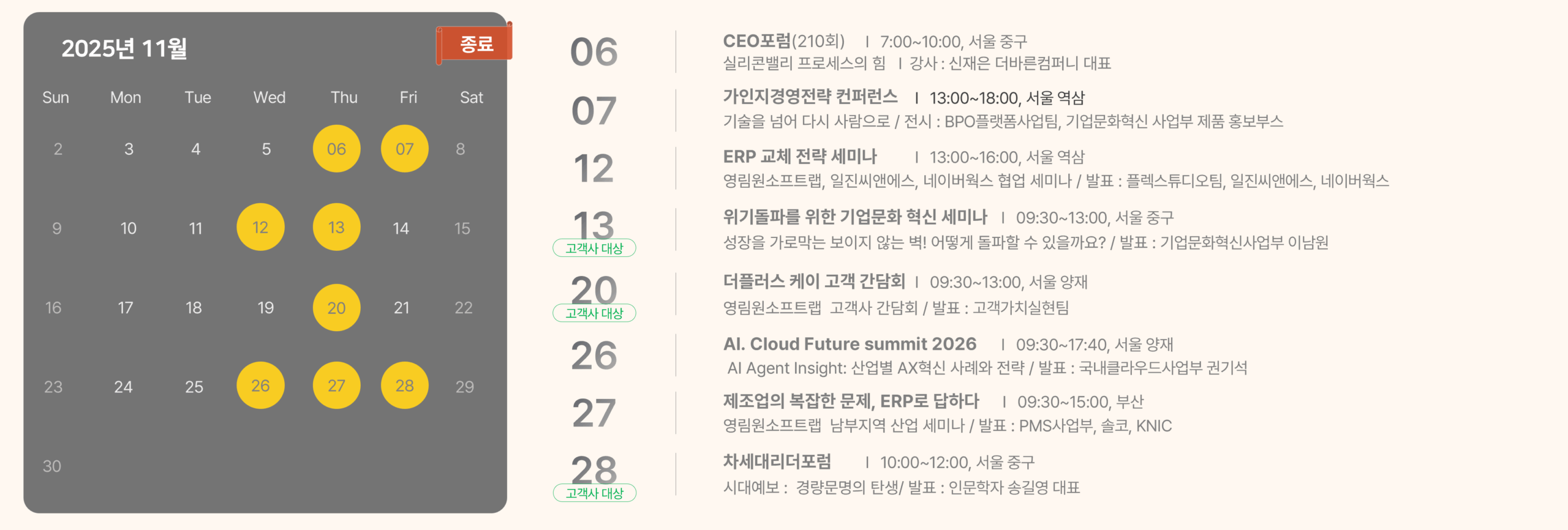 2025년 12월 ~ 26년 1월 영림원소프트랩 행사 일정