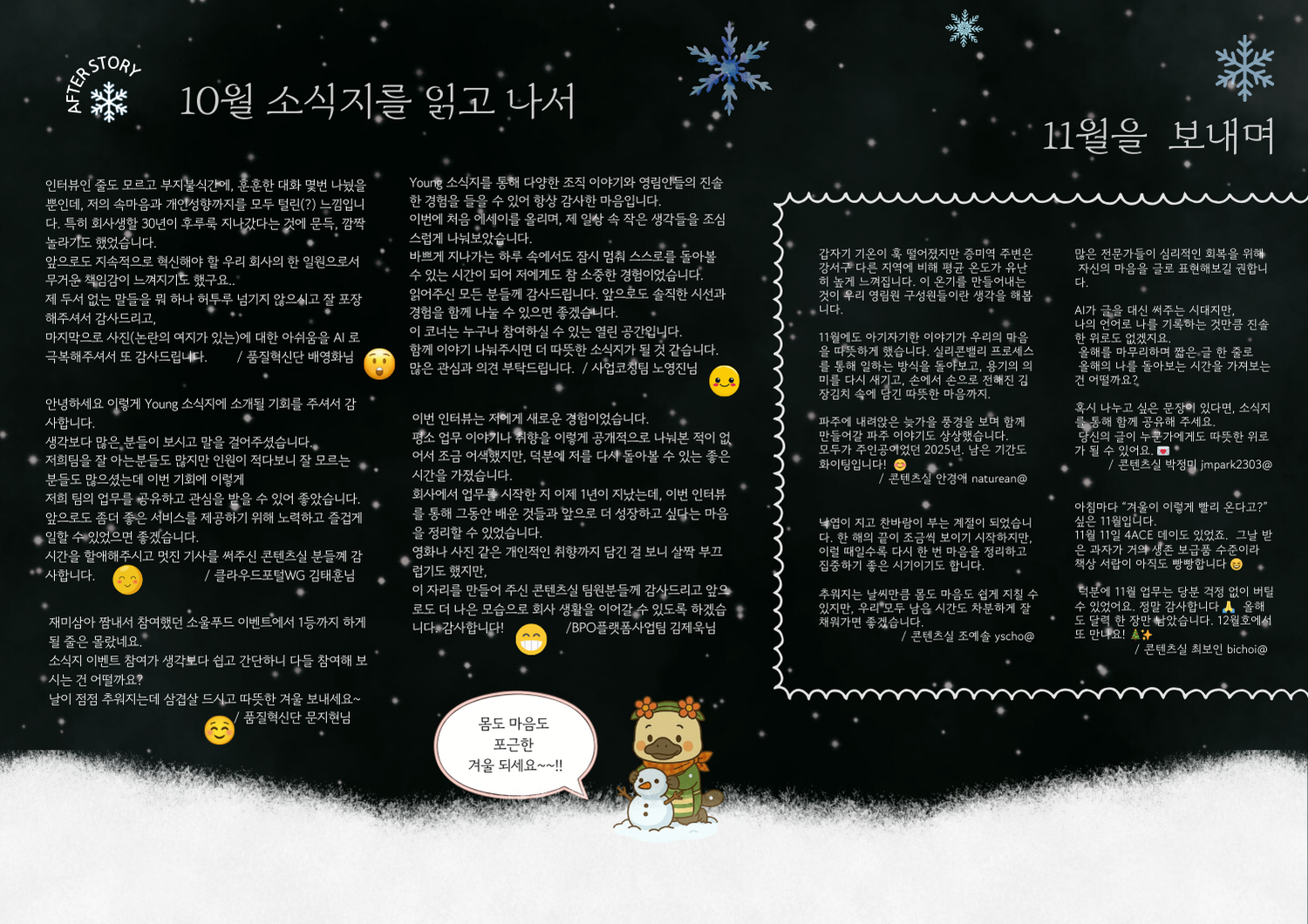 소식지의 기사가 발행된 이후, 그 뒷이야기를 궁금해하신 분들이 많았는데요. ‘AFTER STORY’에서는 인터뷰와 이벤트에 참여했던 영림인들의 진솔한 후기를 담았습니다.