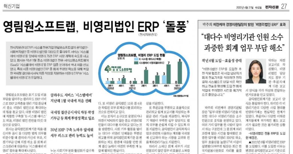 [전자신문] 영림원소프트랩, 비영리법인 ERP ‘돌풍’