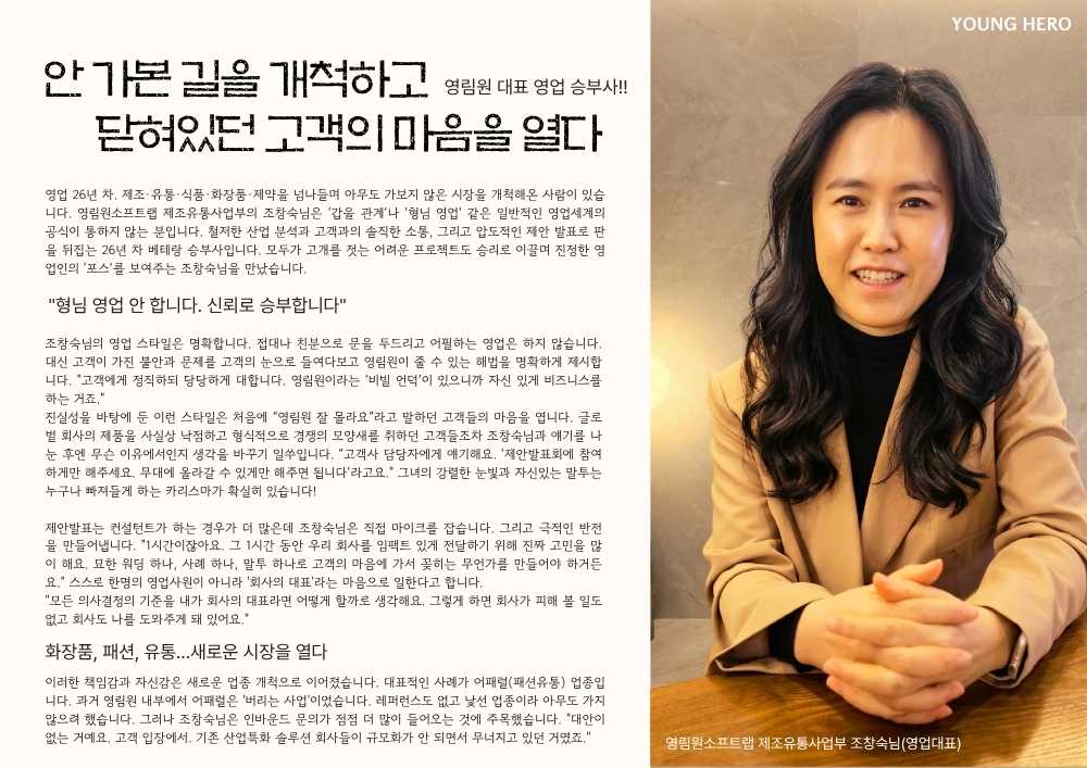 [YOUNG HERO] 안 가본 길을 개척하고 닫혀있던 고객의 마음을 열다, 영림원 대표 영업 승부사!! 조창숙님