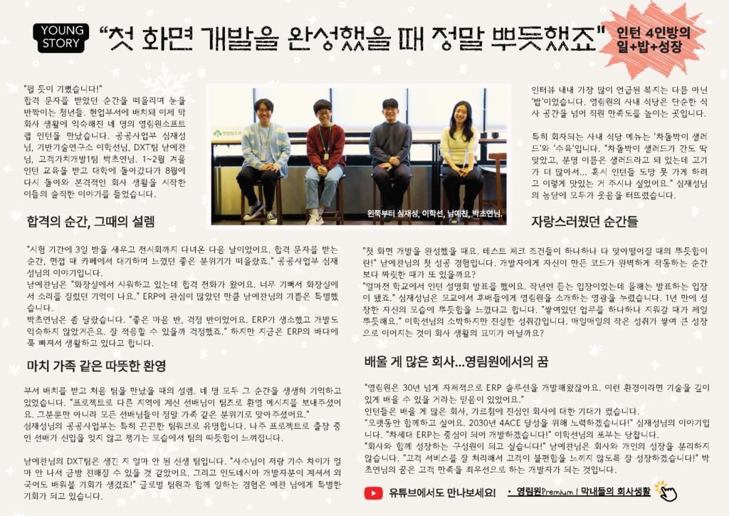 영림원소프트랩의 활력소, 인턴 4인방(심재성, 이학선, 남예찬, 박초연 님)을 만났습니다.