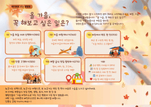 • 2위: 가을 여행 떠나기 (36%) – 국내든 해외든 상관없어요. 가을엔 마음이 떠나야 제맛~