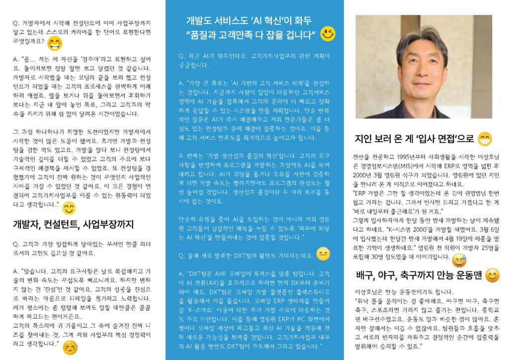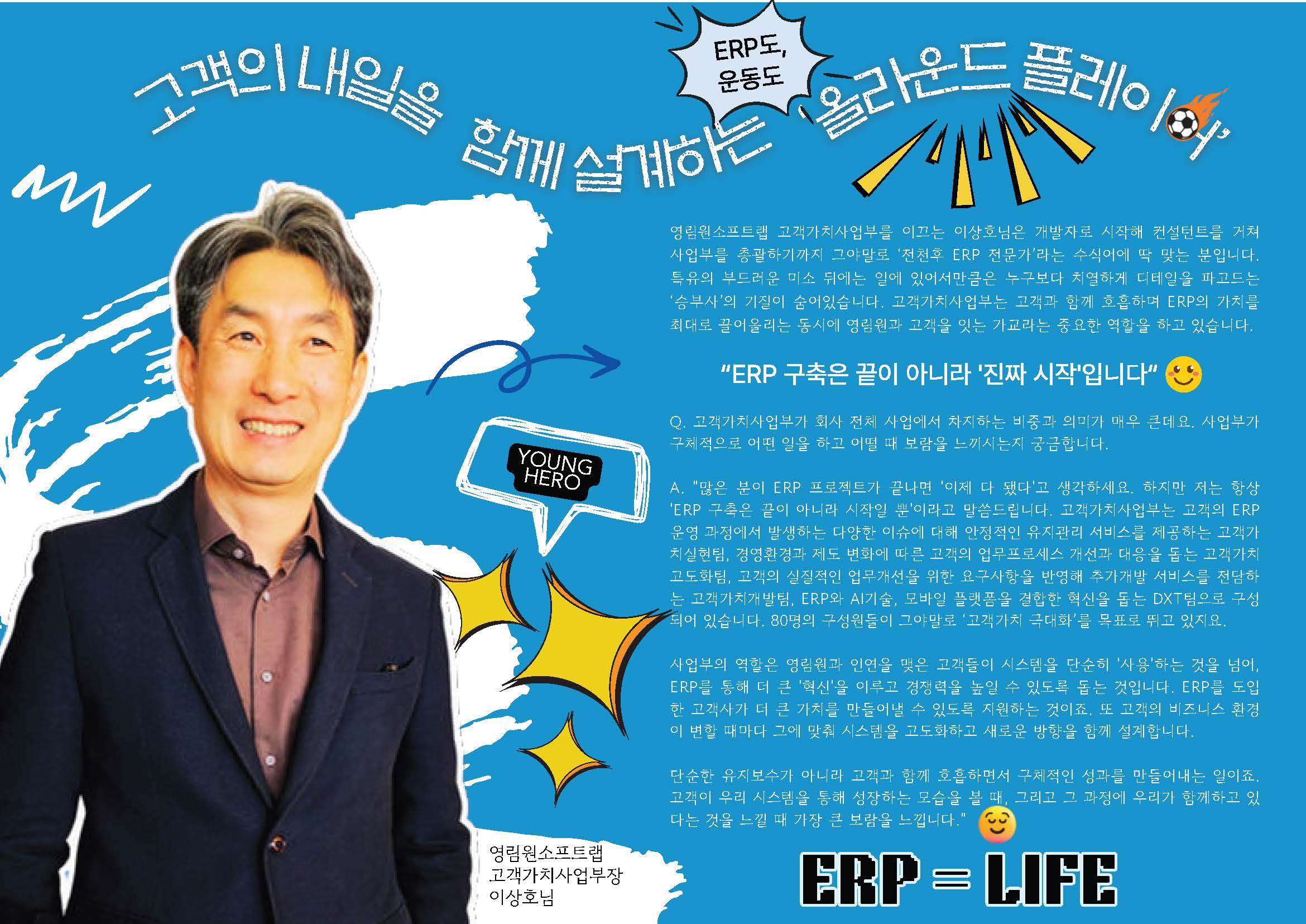 고객가치사업부를 총괄하는 이상호 사업부장님은 ERP 구축이 프로젝트의 마무리가 아니라 고객이 더 큰 혁신을 이루기 위한 ‘진짜 시작’임을 강조합니다.