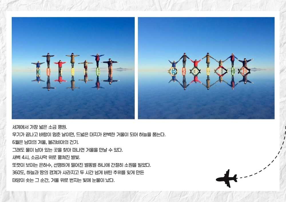 새벽 4시, 소금사막 위로 펼쳐진 별빛. 또렷이 보이는 은하수, 선명하게 떨어진 별똥별 하나에 간절히 소원을 빌었다.