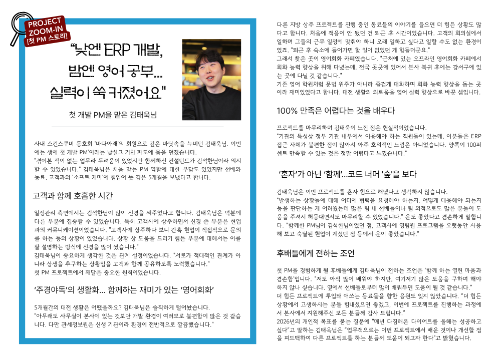 [PROJECT ZOOM IN, 첫 PM 스토리] 낮엔 ERP 개발, 밤엔 영어 공부! 김태욱 님의 뜨거운 성장기